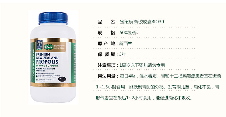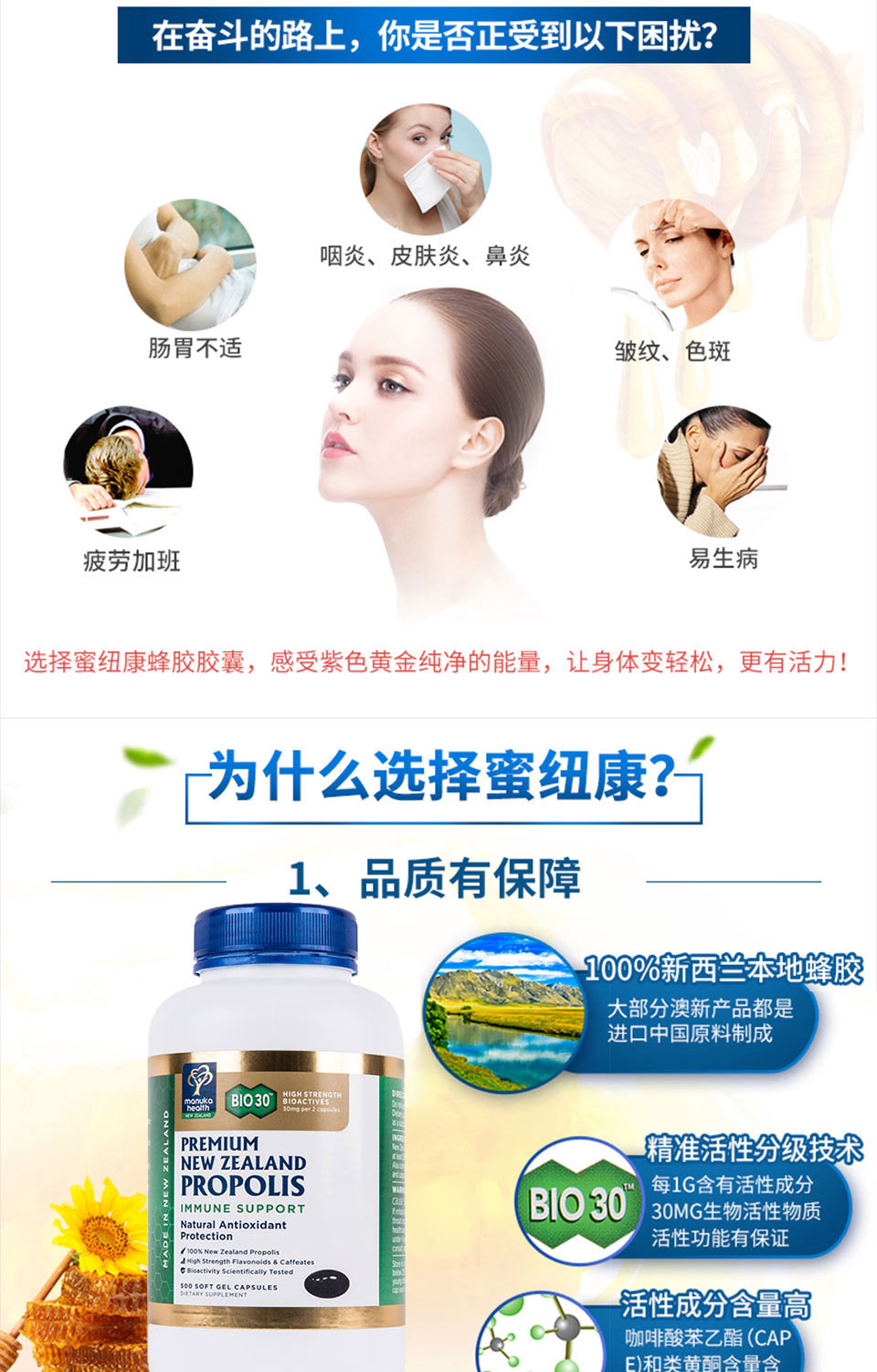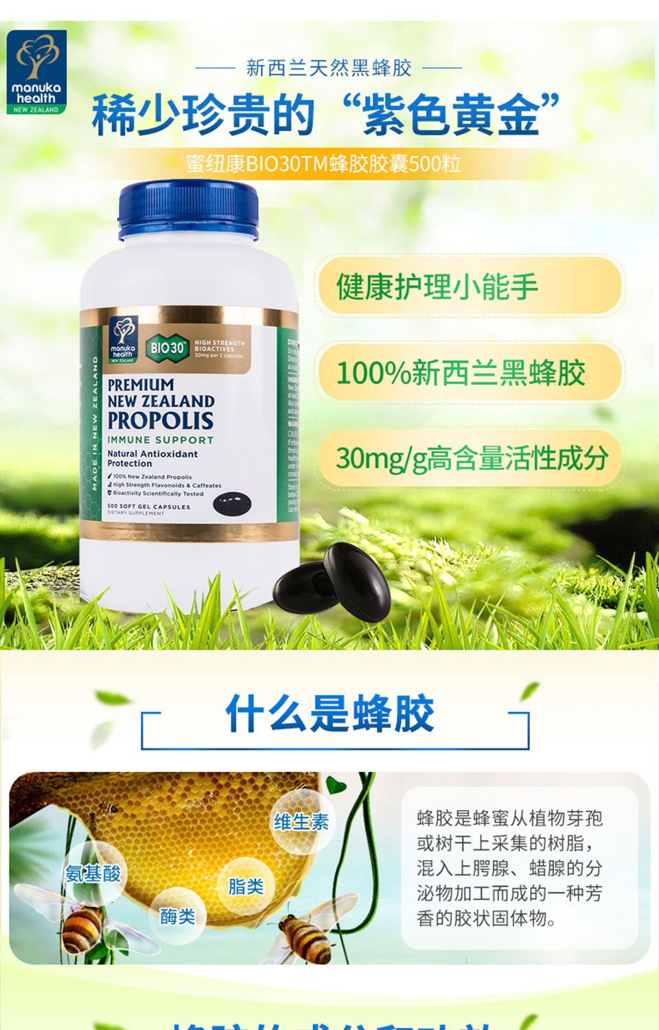 manuka health 蜜纽康 蜂胶胶囊BIO30 500粒 液体蜂胶